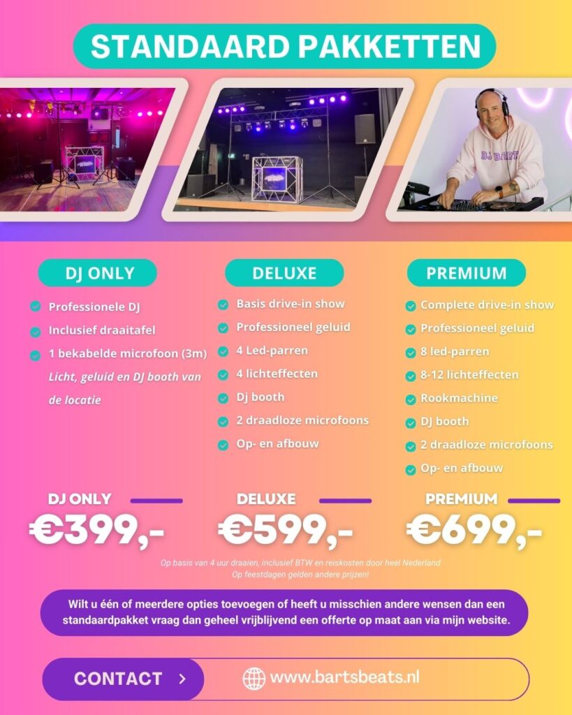 Om het u zo makkelijk te maken heb ik alvast een aantal standaardpakketten voor u samengesteld. Wilt u iets toevoegen, of heeft u misschien andere wensen? Vraag dan geheel vrijblijvend een offerte aan op de offerte pagina.